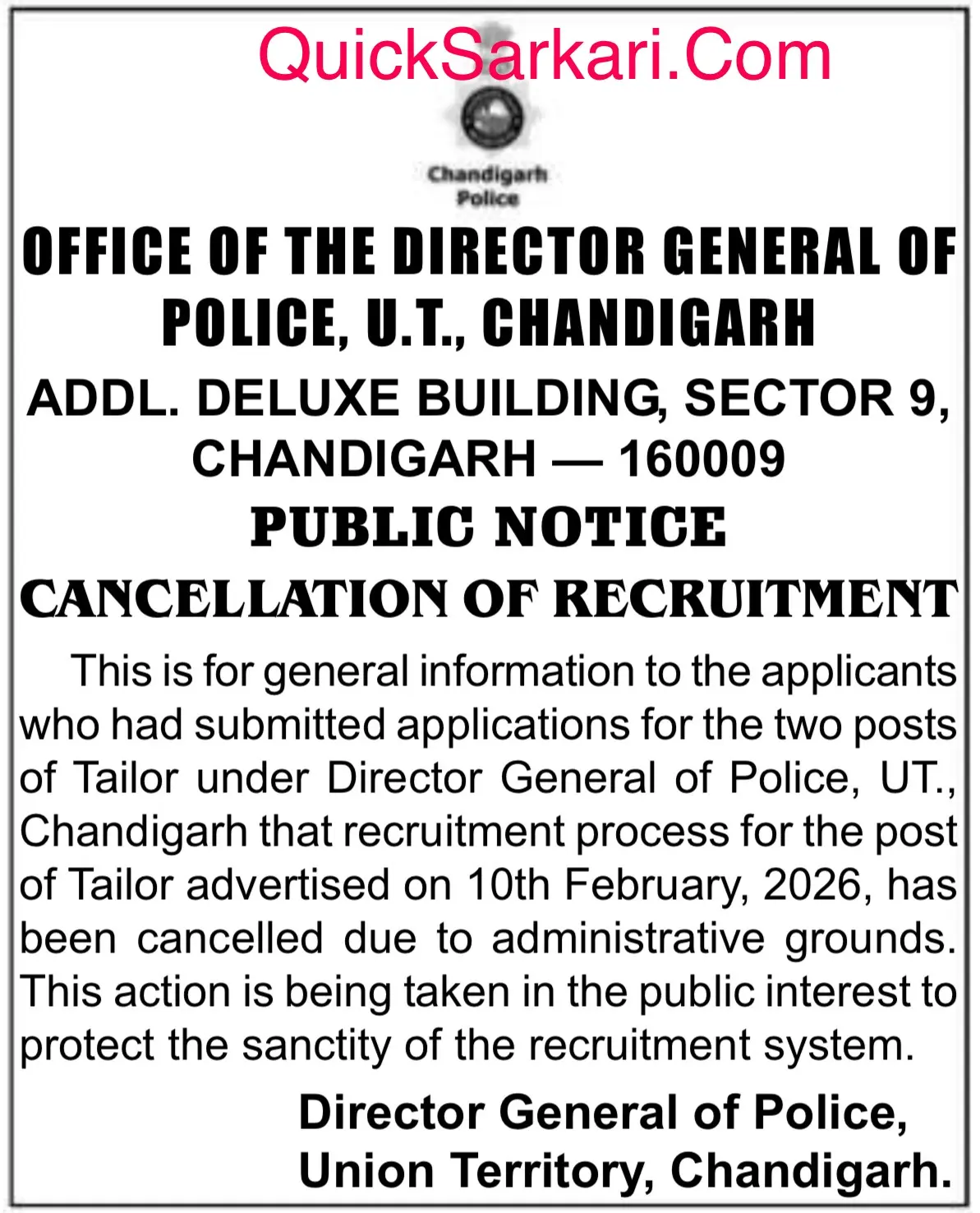 | Chandigarh Police Tailor Recruitment 2026 Notification & Online Form |