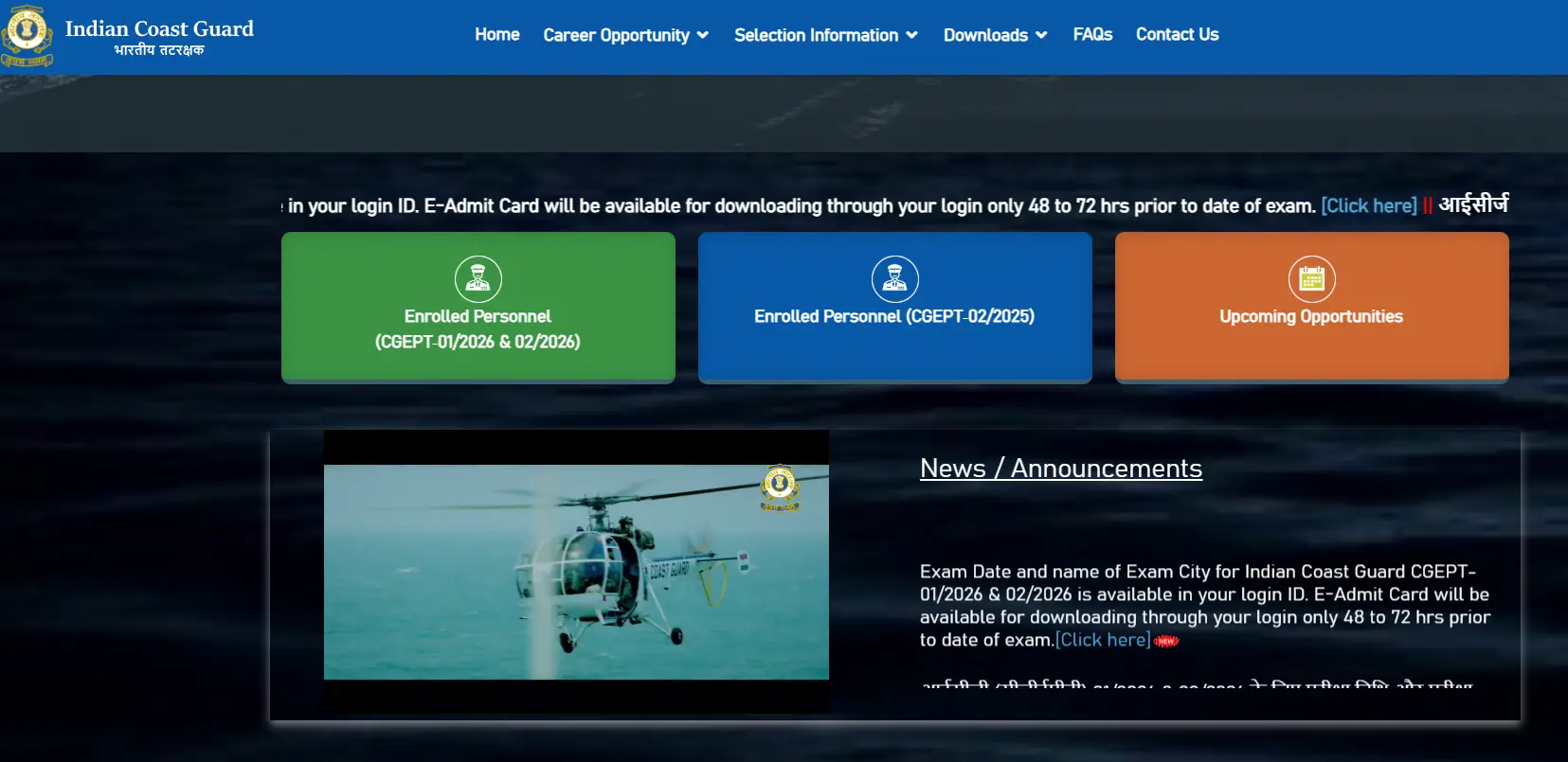 Indian Coast Guard CGEPT Exam Date, City and Admit Card 2025: The Indian Coast Guard (ICG) has released the exam city intimation and admit card for the CGEPT 01/2026 and CGEPT 02/2026 for the posts of Navik (General Duty), Navik (Domestic Branch) & Yantriks. The Indian Navy released the exam city intimation on 4 September 2025. The candidates can download the ICG CGEPT Exam city and Admit Card by logging in from the website joinindiancoastguard.cdac.in/cgept. The direct link to download the Indian Coast Guard CGEPT 01/2026 and 02/2026 Exam City Intimation Slip and Admit Card 2025 is given here.