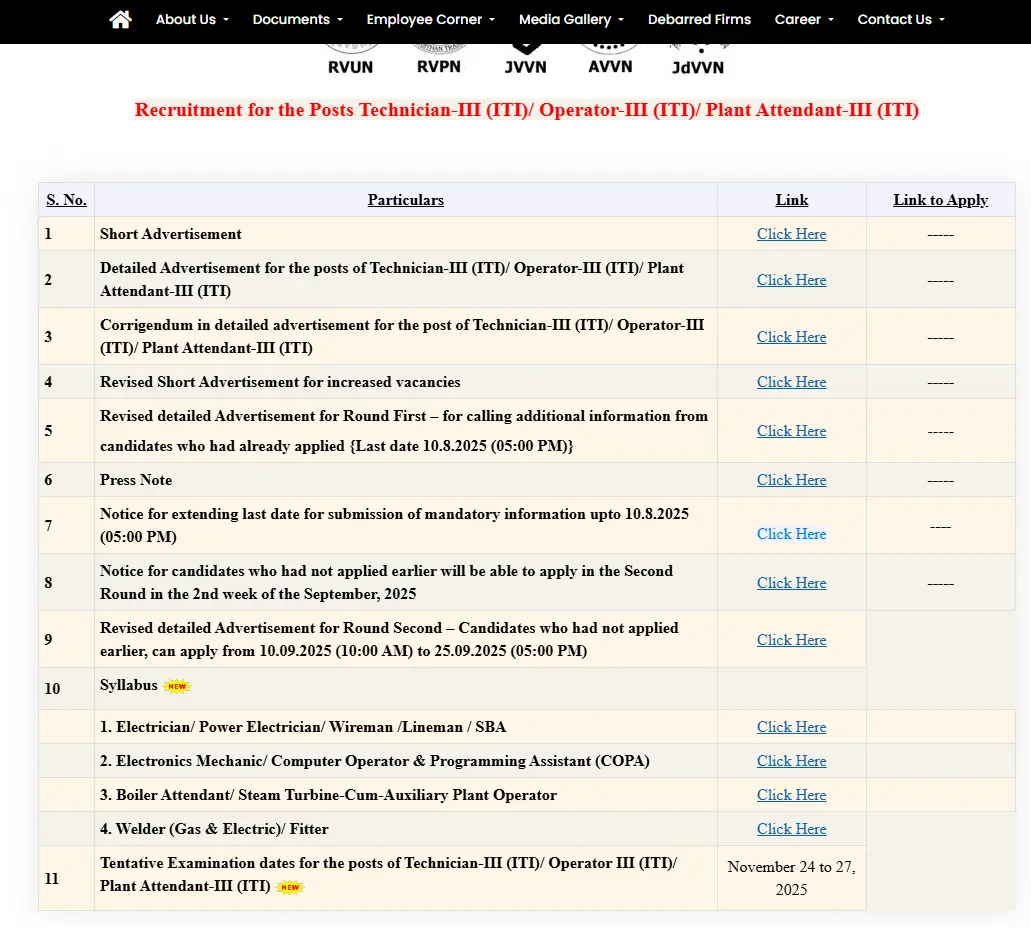 | RVUNL Technician Recruitment 2025 Revised Notification | Notification |
