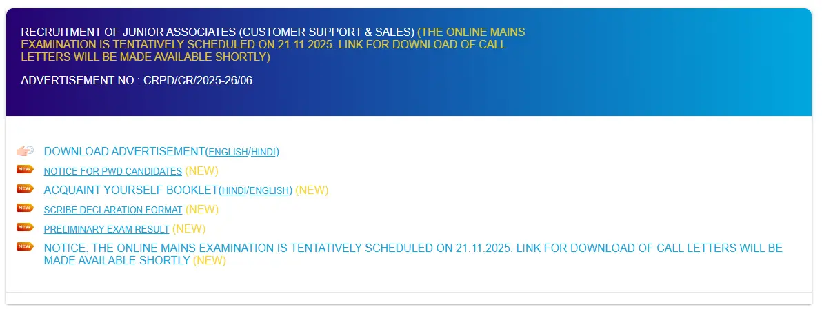 The SBI Clerk Mains Exam will be held on 21 November 2025.